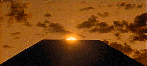 The primary mystery is the film's ending. Dave, the sole survivor of Hal's homicidal rampage, has been whisked across the universe, to an undefined place. In a small, stylishly furnished room, we see him grow old and ancient in a time-lapse sequence, until he appears on his own deathbed, incredibly withered. In the last moments of his life, he finds the strength to pull himself up and point to an object which has suddenly appeared in the room. It is the enigmatic black "monolith" which initiated the entire space odessey. Then, just as suddenly, a huge human embryo appears on the screen floating in outer space. Wide eyed, it turns to the viewing audience, and to the triumphant tones of "Thus Spoke Zarathrusta," the film ends. There is no explanation, the film just ends.