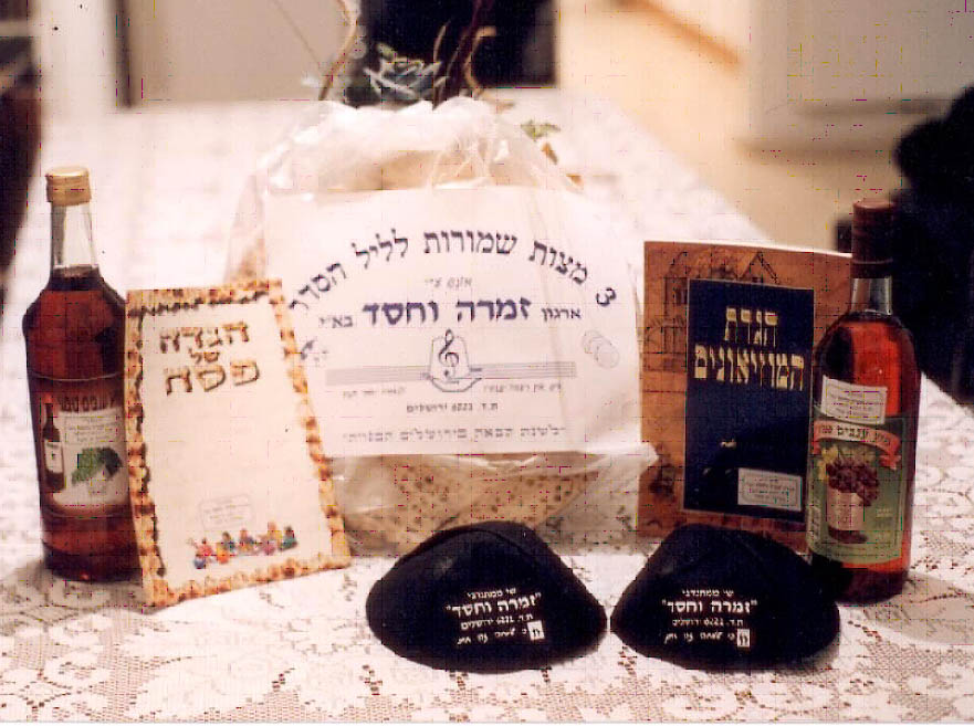 Seder sets - seder plate, wine, round matzot, haggadot (the book for
